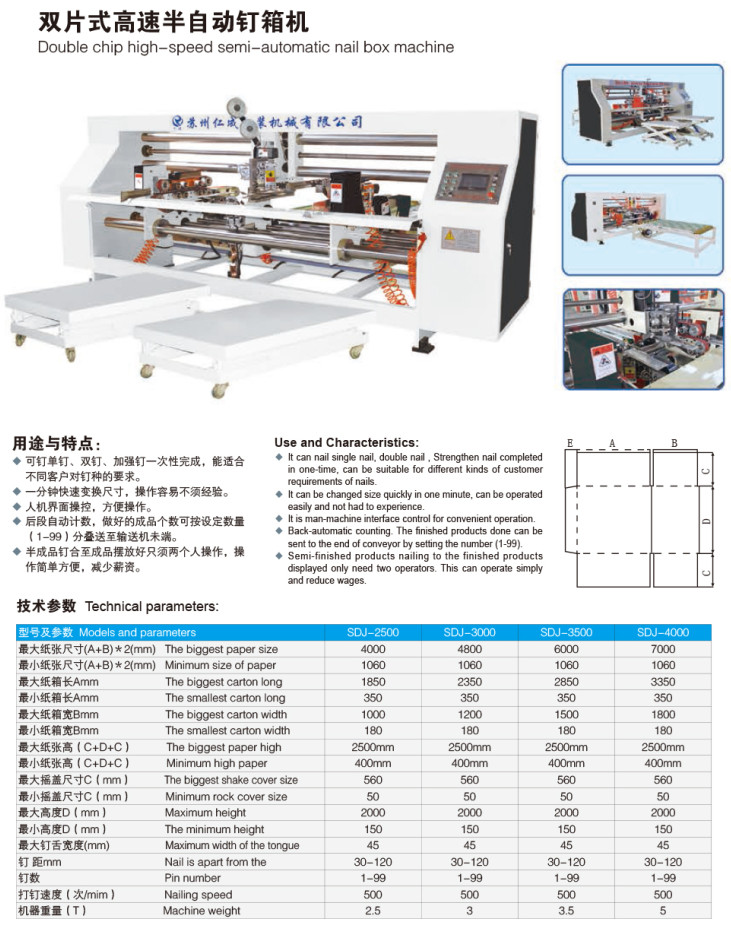 產(chǎn)品名稱: 雙片式高速半自動釘箱機